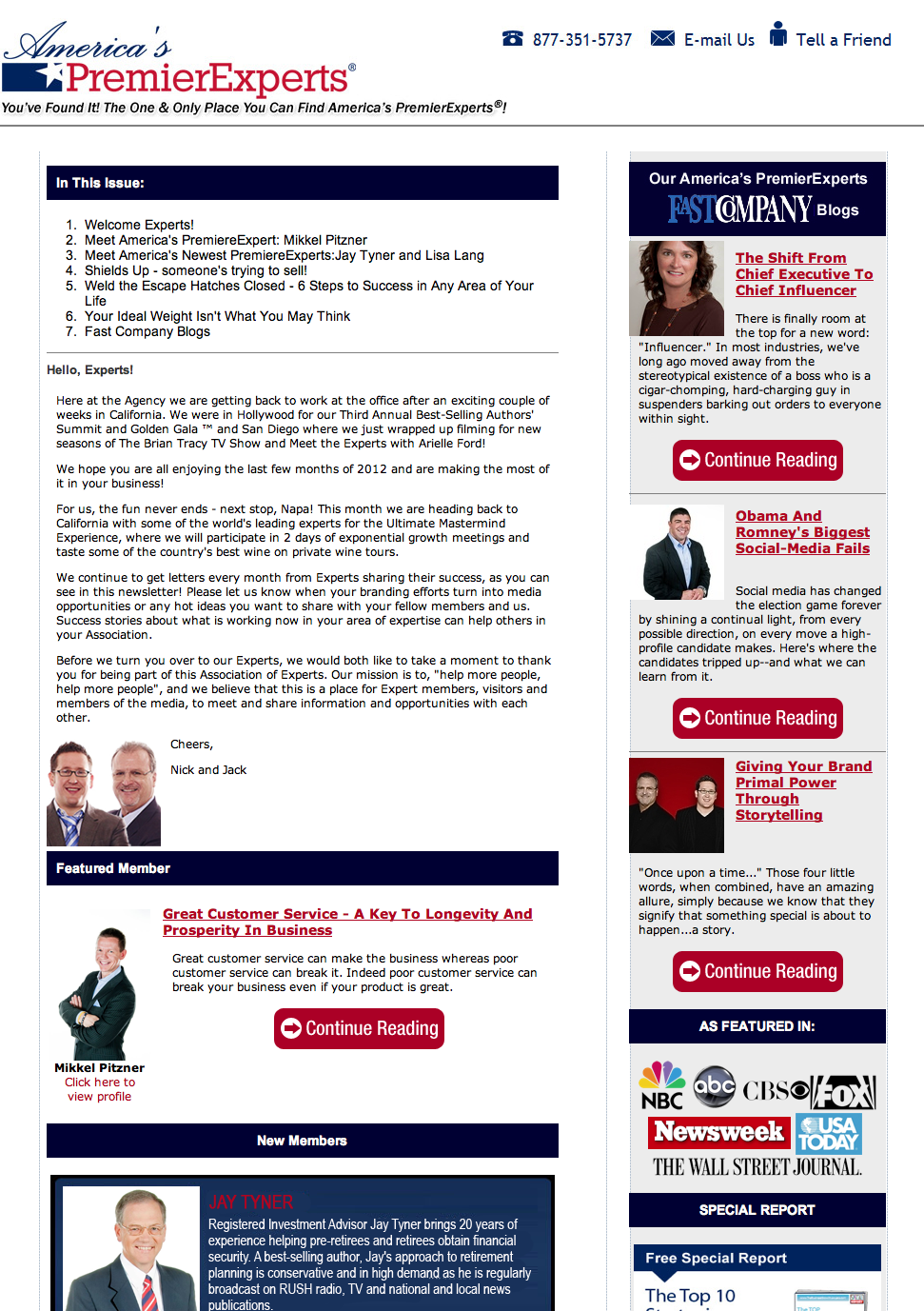 I have been honored by being featured in the latest issues of America’s PremierExperts’ latest Newsletter.
