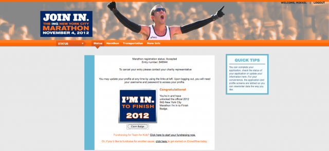 Yeah, I have secured my spot for the 2012 ING New York Marathon.
