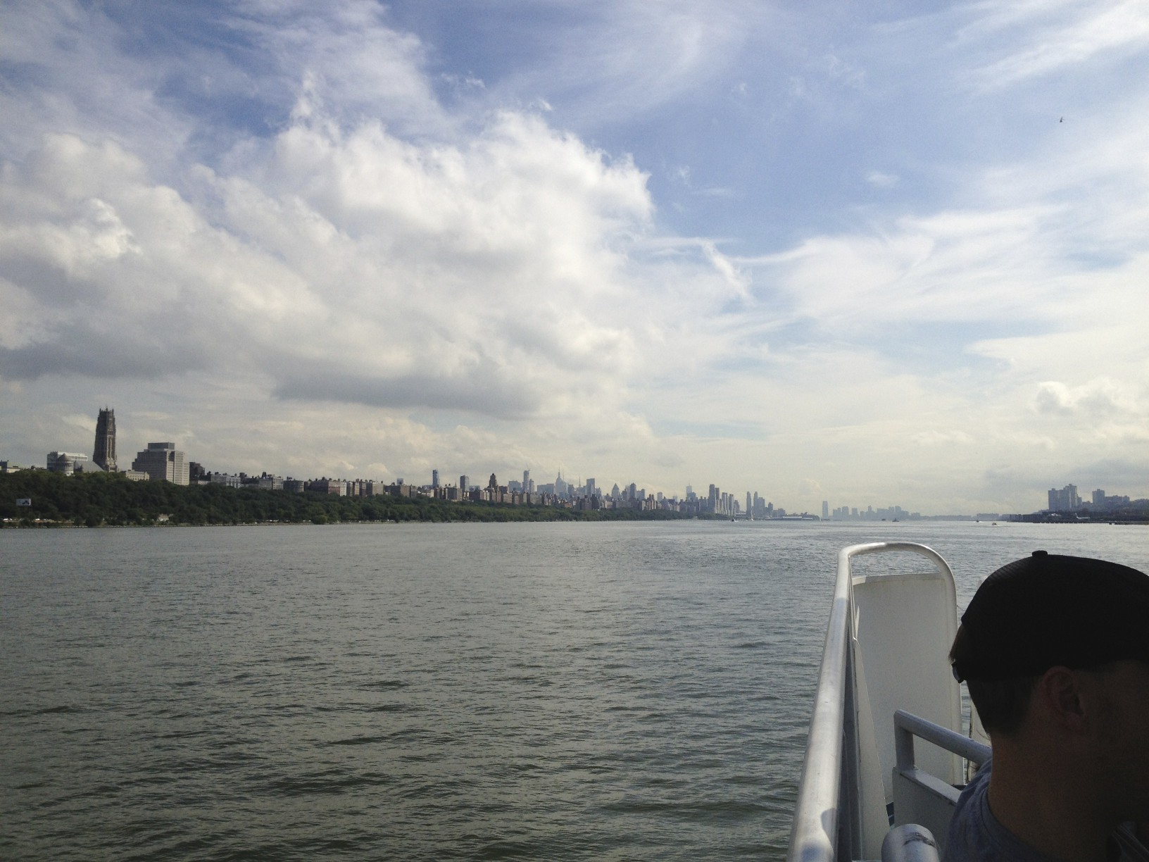 The swim portion required you to take a ferry at 4 am to transition area on the New Jersey shore just north of George Washington Bridge and then another ferry onwards from there to the swim start barge up the Hudson – so yeah, the swim was in the Hudson river. In fact near the same location into which several million gallons of raw sewage was let out only a few days before due to a mishap, yuck!