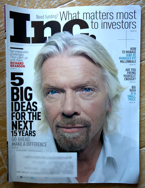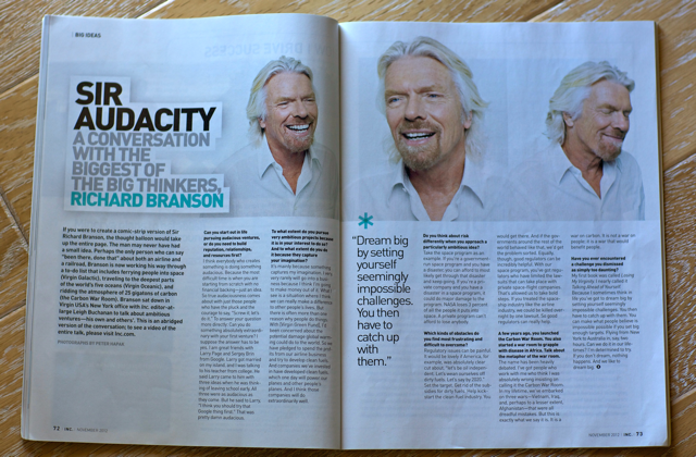 The quote from Sir Richard Branson was highlighted in an article brought in the November 2012 issue of Inc. and it almost sounds like he is quoting me.