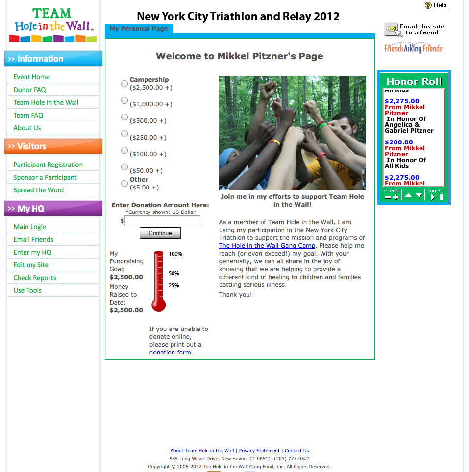 And my fund raising page with Team Hole In The Wall ended up looking like this: